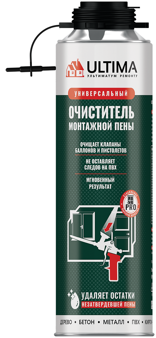 - Для удаления загрязнений незатвердевшей монтажной пены с внешней поверхности пистолета, клапанов баллонов, рабочих поверхностей и одежды: